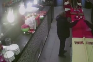Imagens de videovigilância mostram o insólito momento em que três jovens fazem todos os esforços para esconder uma garrafa de vodka na rua, colocando-a sobre uma unidade exterior de ar condicionado.