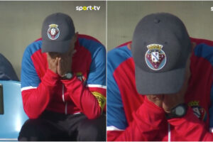 Com o veículo impossibilitado de prosseguir, os jogadores viram-se obrigados a completar o trajeto a pé até ao estádio.