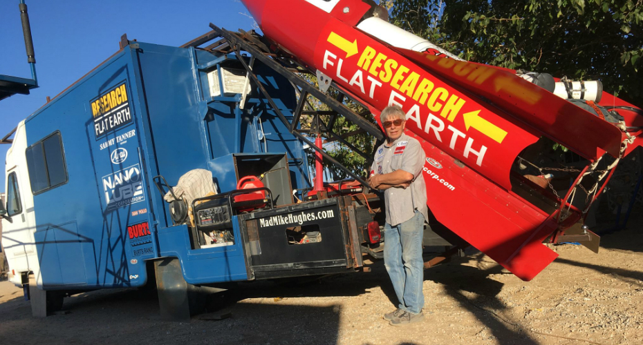 Mike Hughes, de 61 anos, vai lançar-se de um foguete construído por si, com o objetivo de comprovar que a Terra não é redonda. O motorista de limusinas da Califórnia espera atingir mais de 500 metros de altura, para depois fotografar a Terra e provar que todos vivemos num planeta em forma de disco… e não num planeta redondo.