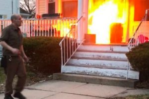 Enquanto explicava o processo, o instrutor aproximou-se demasiado do fogo e quando acionou o extintor, a chama aumentou e o vento direcionou-a para a sua cara, fazendo o instrutor afastar-se imediatamente.