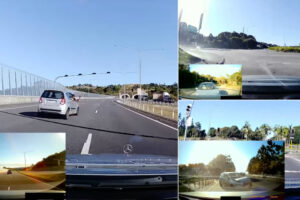 O motorista do veículo que estava a ser carregado percebeu que alguns contentores estavam prestes a cair, e reagiu rapidamente conseguindo sair do local segundos antes do embate.
