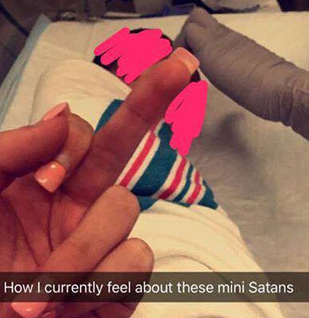 Uma das enfermeiras fotografou-se com um recém-nascido a agarrar-lhe o dedo do meio e depois publicou a imagem no Snapchat. Não fosse a imagem suficiente, a profissional ainda escreveu na legenda que era daquela forma que se sentia em relação àquele “pequeno satanás”.