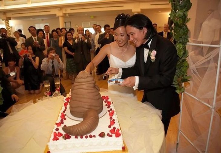 O bolo é um dos elementos que muitos gostam de personalizar, escolhendo formatos e decorações no mínimo bizarras. Veja 16 casos em que os noivos não foram muito felizes na escolha.