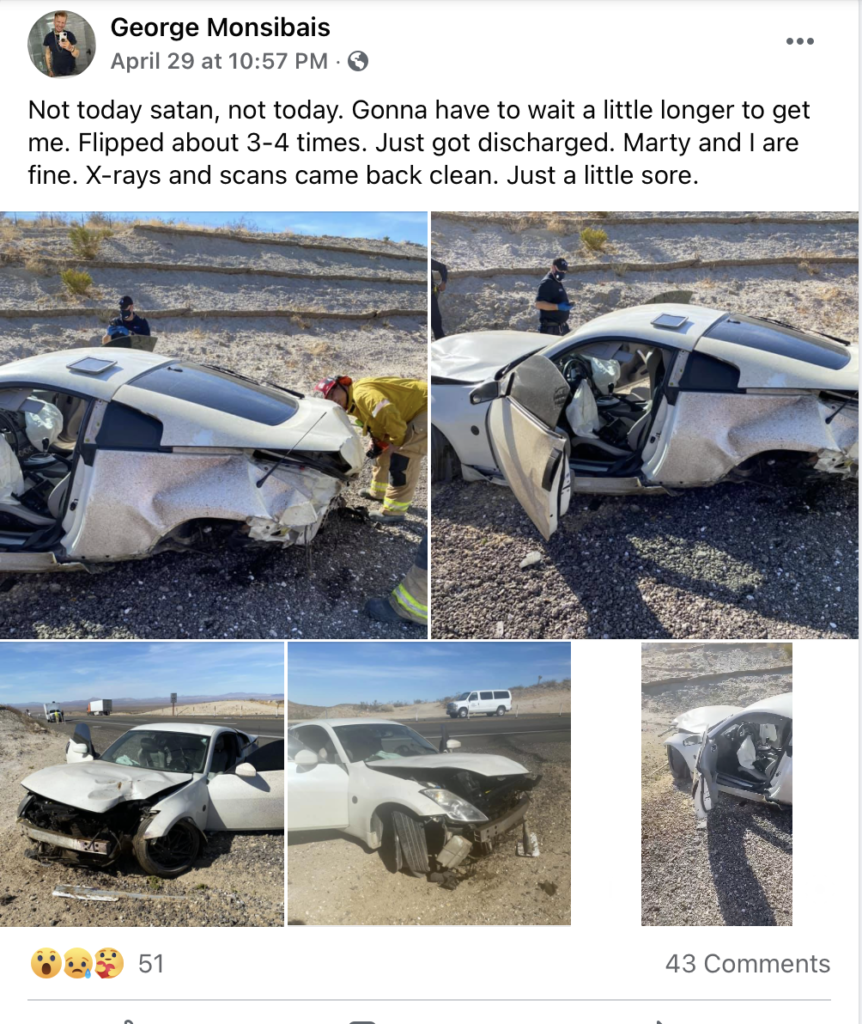 No vídeo é possível ver o Nissan a ultrapassar o camião e a perder o controlo, embatendo numa placa de limite de velocidade até sair da estrada, capotando várias vezes até parar.