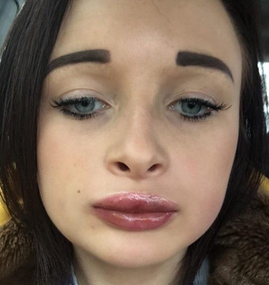 A jovem inglesa Billie Roocroft, de 23 anos, ficou irreconhecível após a realização de um preenchimento labial caseiro.