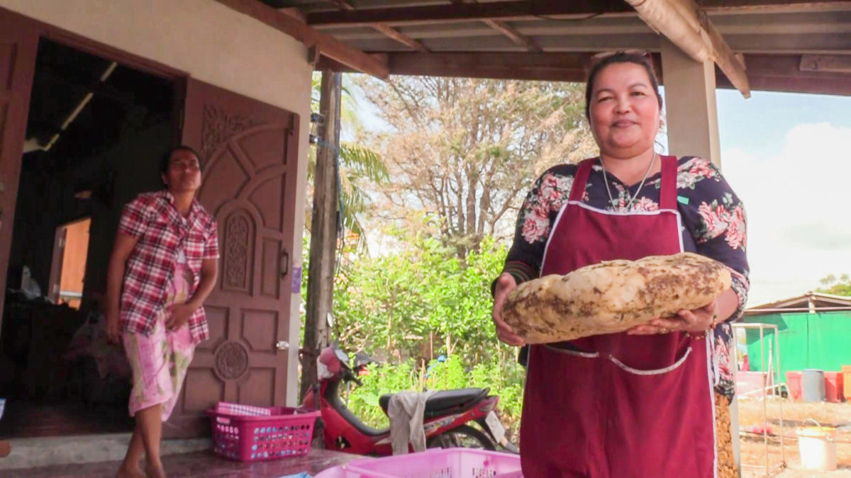 Após pedir ajuda aos seus vizinhos, Siriporn surpreendeu-se ao saber que a substância era vómito de baleia, conhecido como âmbar cinza.