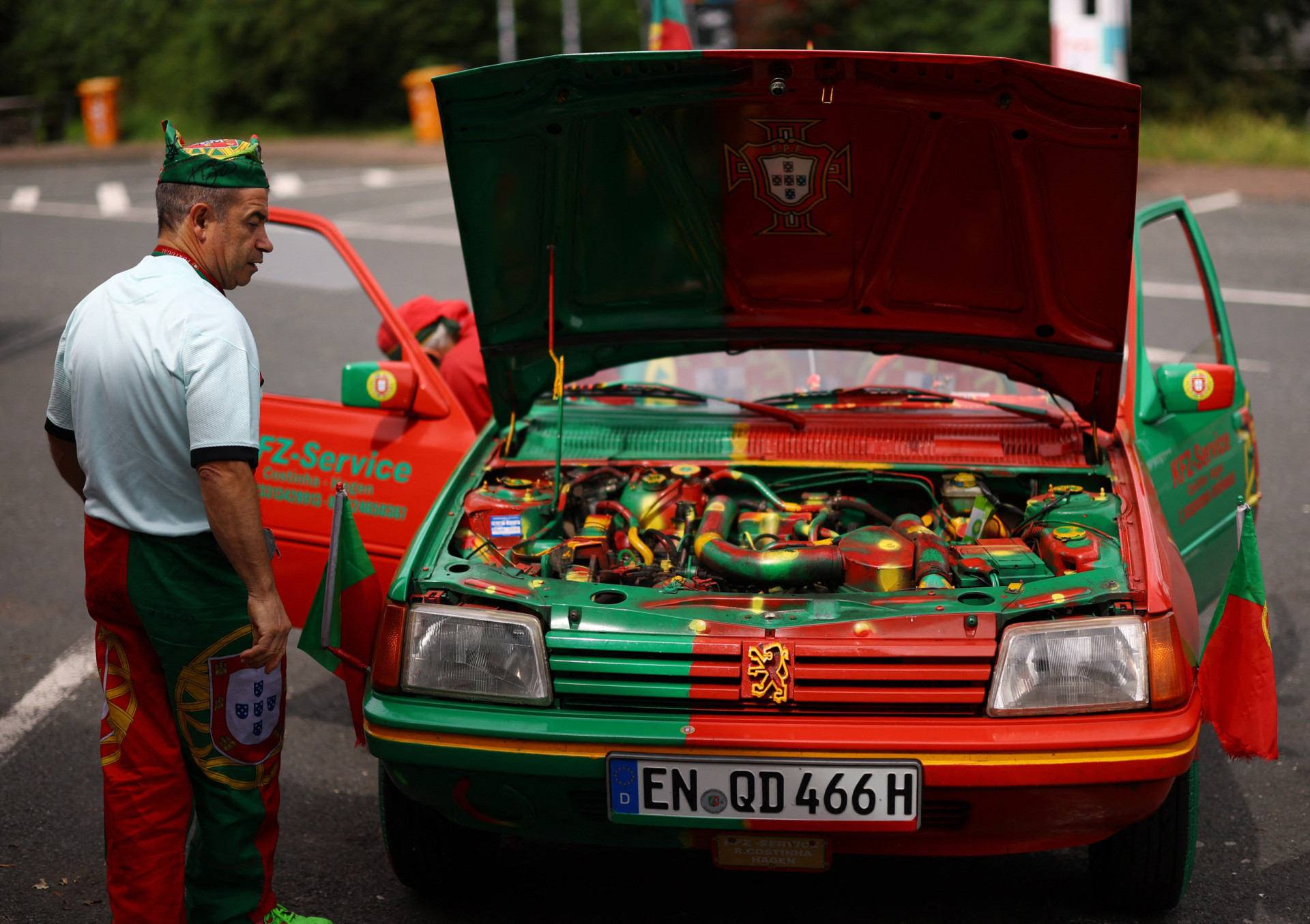 “A pintura foi feita com a pistola numa mão e uma cerveja na outra. Isto não está profissional porque eu não sou pintor. Sou mecânico”, contou Costinha, que quer levar este carro até Berlim, cidade onde se disputa a final, caso a seleção nacional lá chegue.
