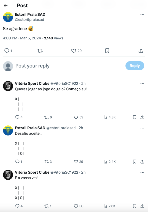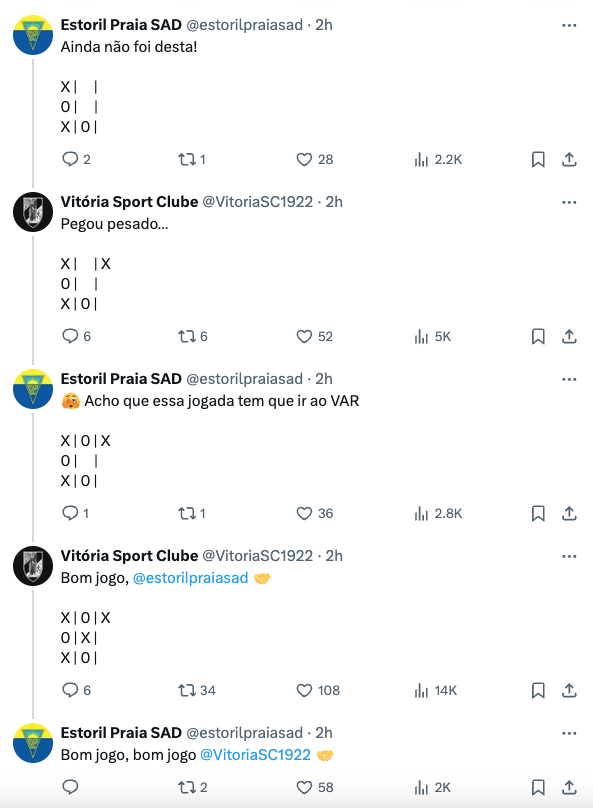 Na ausência das redes sociais habituais, os dois clubes decidiram protagonizar um momento de fair-play e descontração no Twitter (agora chamado de X).