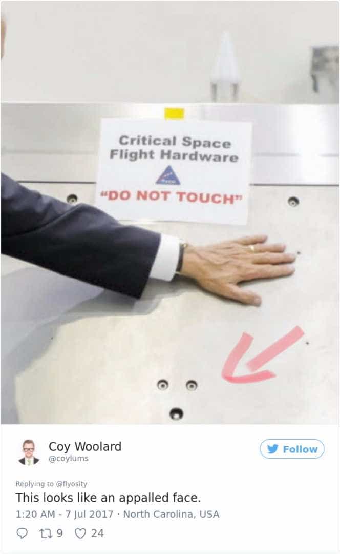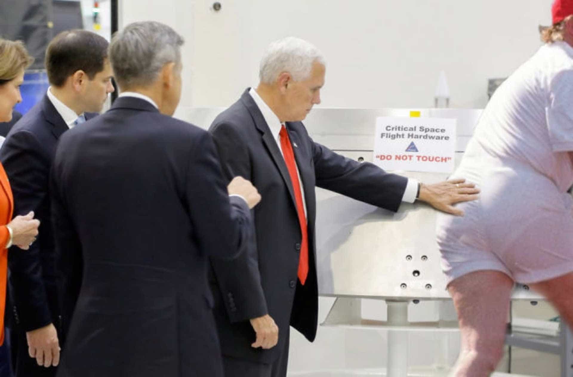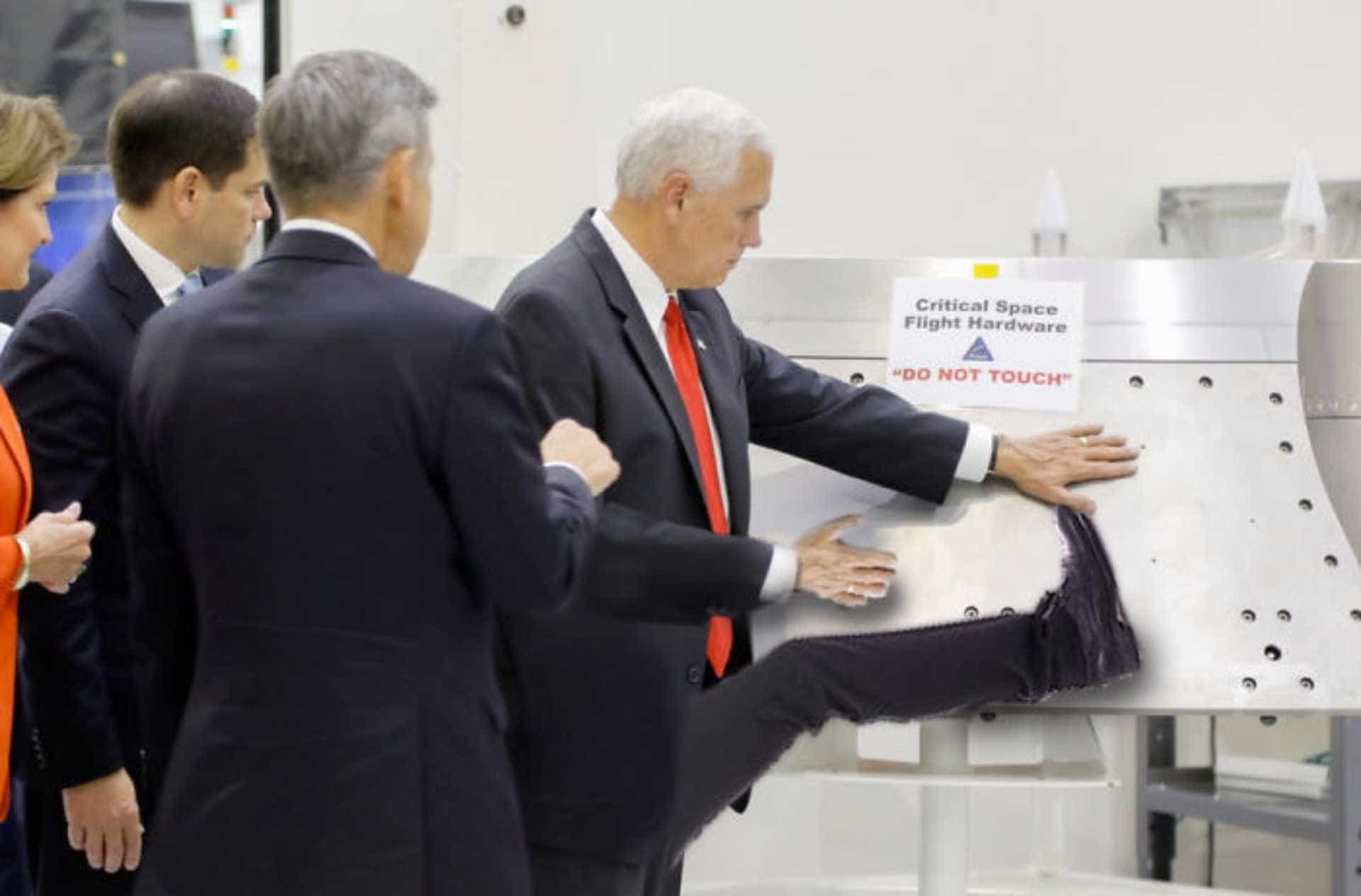 Durante uma visita ao centro Kennedy Space da NASA, na Flórida, Mike Pence não conseguiu deixar as mãos quietas e acabou por tocar numa peça de ‘hardware’ de uma nave espacial.