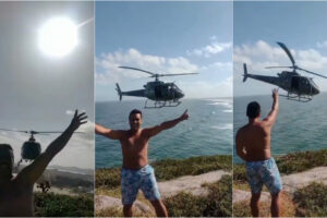 Imagens espetaculares divulgadas pelo departamento de socorro norueguês mostram um homem a atirar-se da popa do navio para o mar revolto.